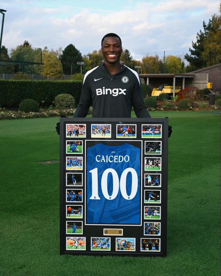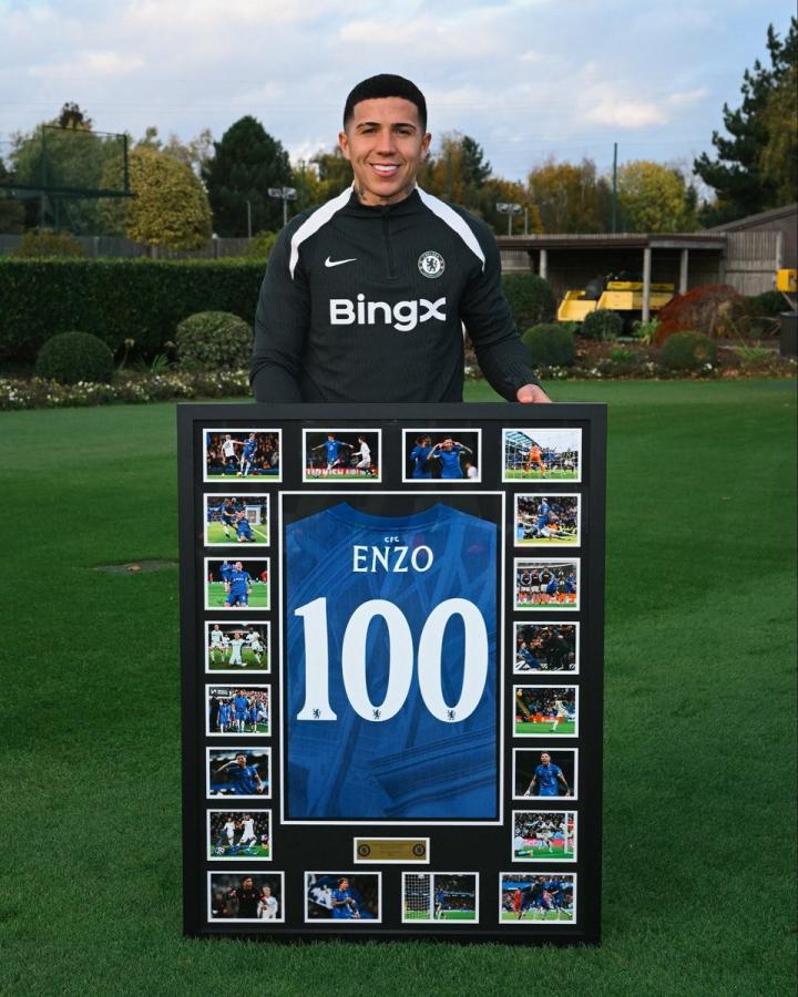 伦敦时间10月28日,切尔西足球俱乐部通过官方渠道发布影像记录,证实已向该五位运动员颁发百场出战里程碑纪念品,纪念框架主体为印有运动员姓名及"100"标识的定制球衣,同时附赠运动员在切尔西效力期间的高光时刻影像合集。